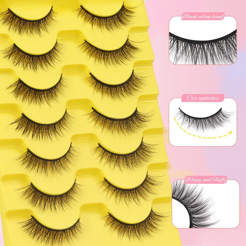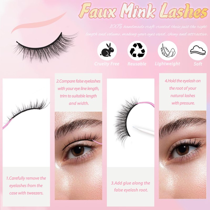 - WISPY LASHES: These lashes are super wispy and natural, which are suitable for daily-using. 100% handmade craft created these just the right length and volume, making your eyes vivid, shiny and attractive.