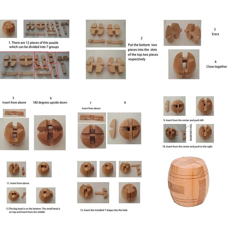 The internal structure of these 3-D puzzles are engaged, very artful and delicate. It looks simple at your first sight, but when it take apart you will feel very puzzle to reassemble.