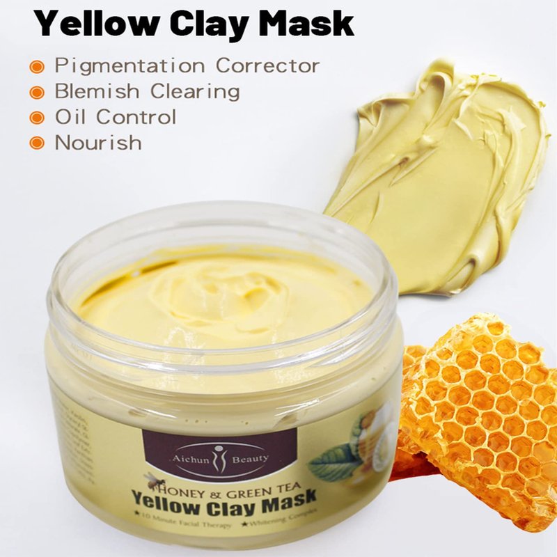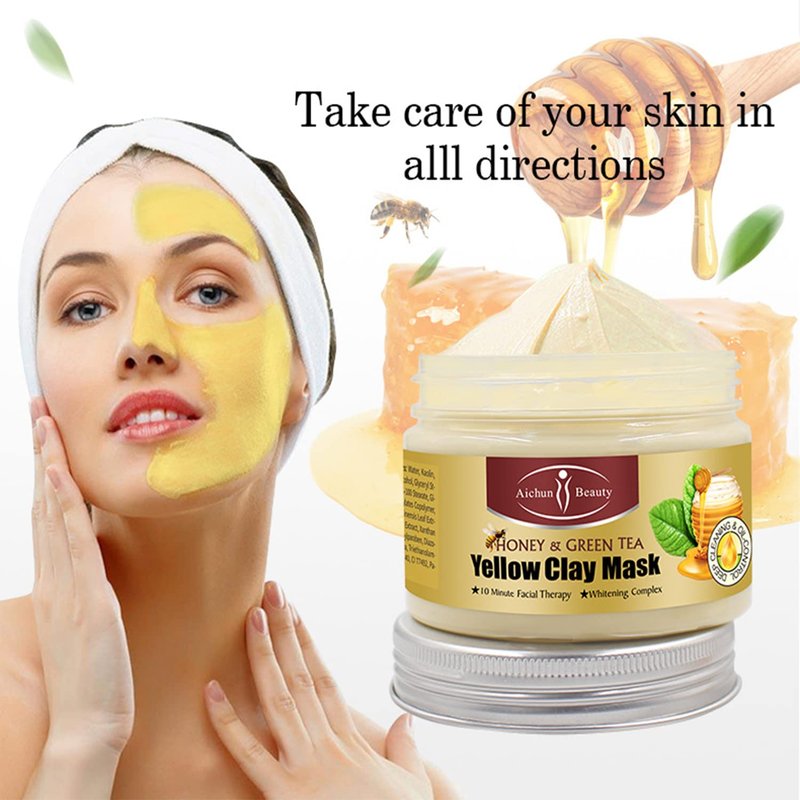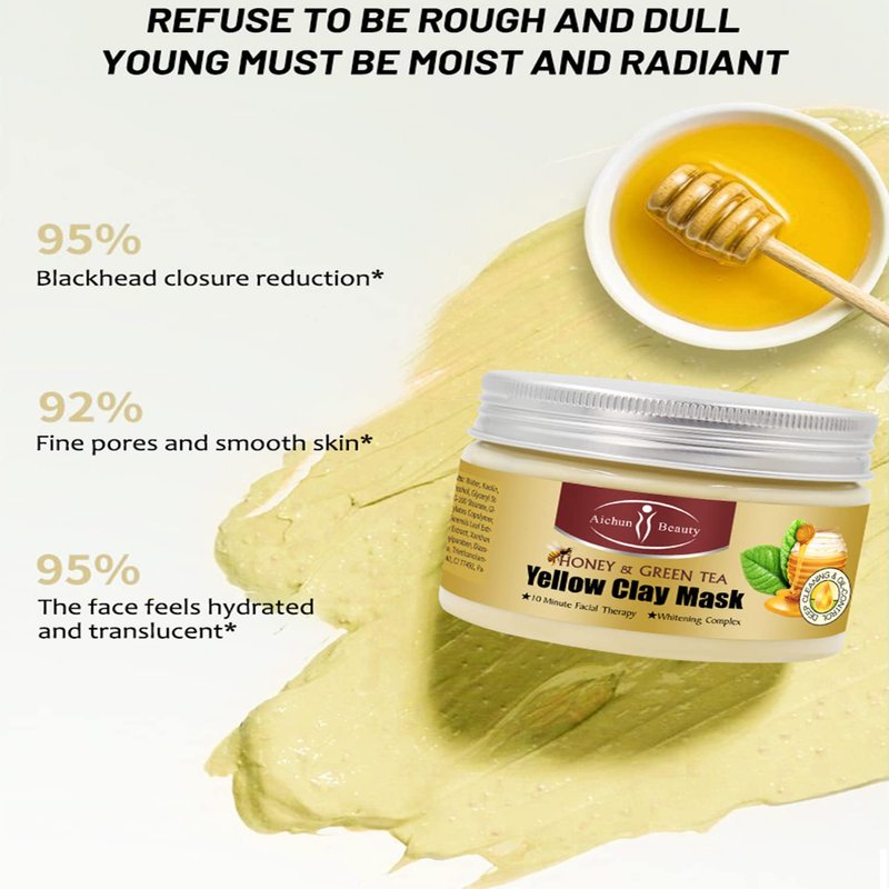 AICHUN BEAUTY Clay Face Mask Deep Cleansing Exfoliation Soothing Repair Remove Blackheads Facial Moisturizing Anti-Acne (HONEY & GREEN TEA (YELLOW))