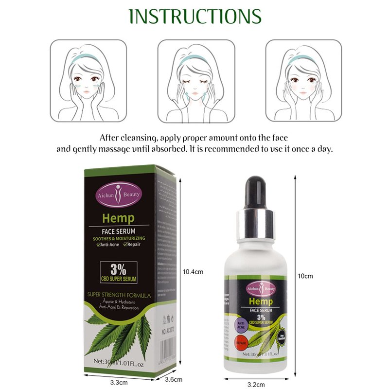 About this item: Rich in Hemp seed extract and sodium hyaluronate. It gently and effectively resists inflammation, calms the skin. Resists aging and oxidation, lightens speckles, and dispels acne Its active formula effectively promotes protein production. Replenishes moisture, and shrinks pores, leaving the skin nicely hydrated and bright. After facial cleansing, apply proper amount of this product to the face and gently massage until absorption. Once daily use is recommended.