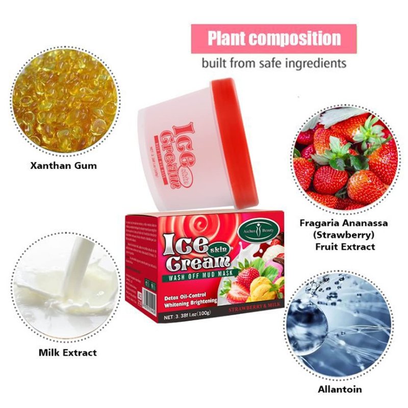 AICHUN BEAUTY Ice Cream Facial Wash Off Mud Mask Oil-Control Deep Cleaning Moisturizing Exfoliation Blackhead Skin Care 100g 3.38FL. OZ (STRAWBERRY & MILK)