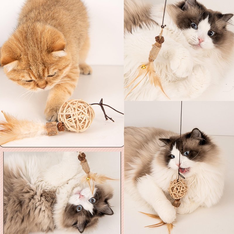 • Silvervine Feather Cat Wand Refills : Our cat wand replacements are made from natural silvervine, raffia, sisal rope and gall fruit.The gall fruit on the cat chew stick has a stronger taste and is more attractive to cats.While interacting with the cat, the cat can chew on toys. The natural sisal rope and raffia are bite resistant and help cats clean teeth.There are absolutely safe for cats to chew and bite.