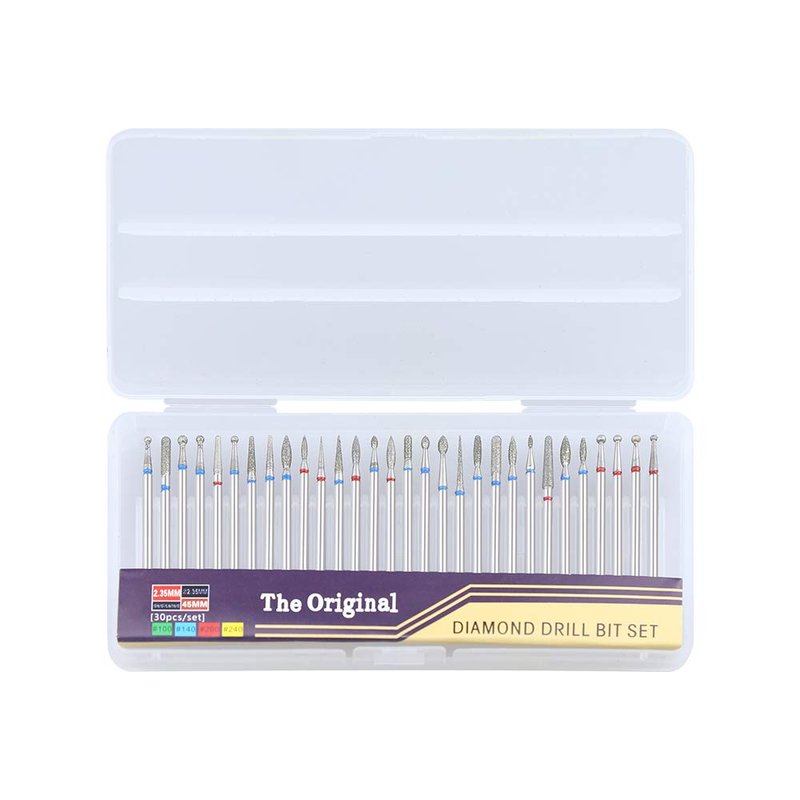 Aieil Professional Diamond Nail Drill Bit | 30 PCS Diamond Drill Set - Set of 30 pcs | 3/32" Shank, Perfect for doing surface work, shortening and backfill cutting