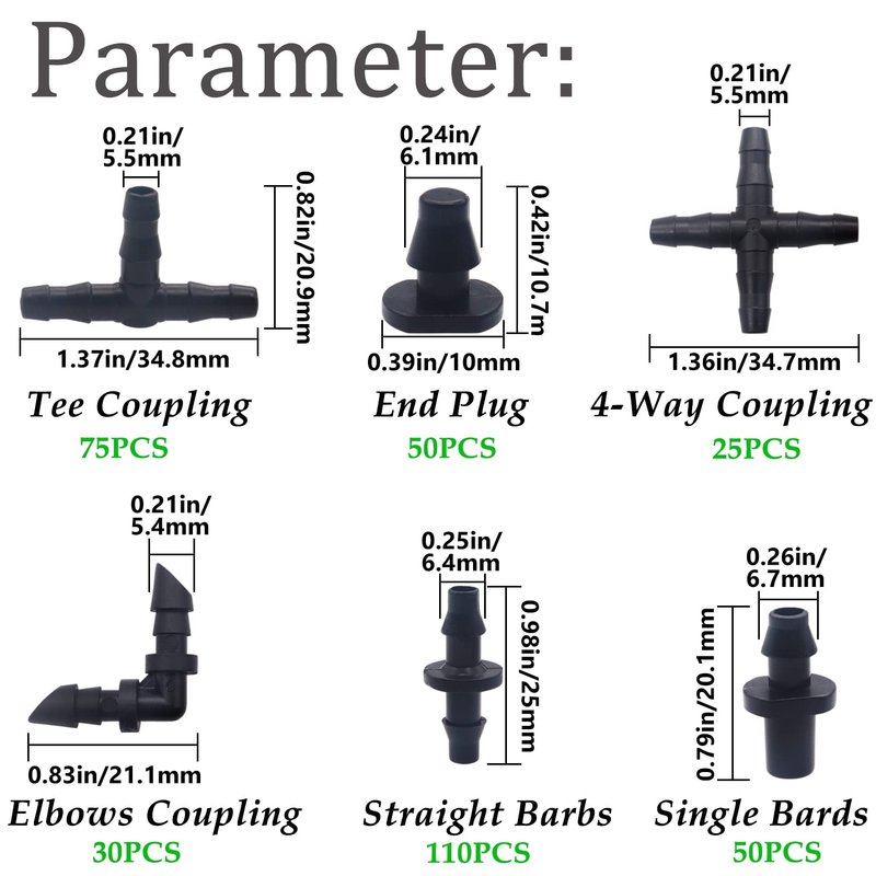 - Size: These irrigation kits are designed with barbs and can be used to connect 1/4 inch drip irrigation pipes. Please check the size carefully before purchasing.