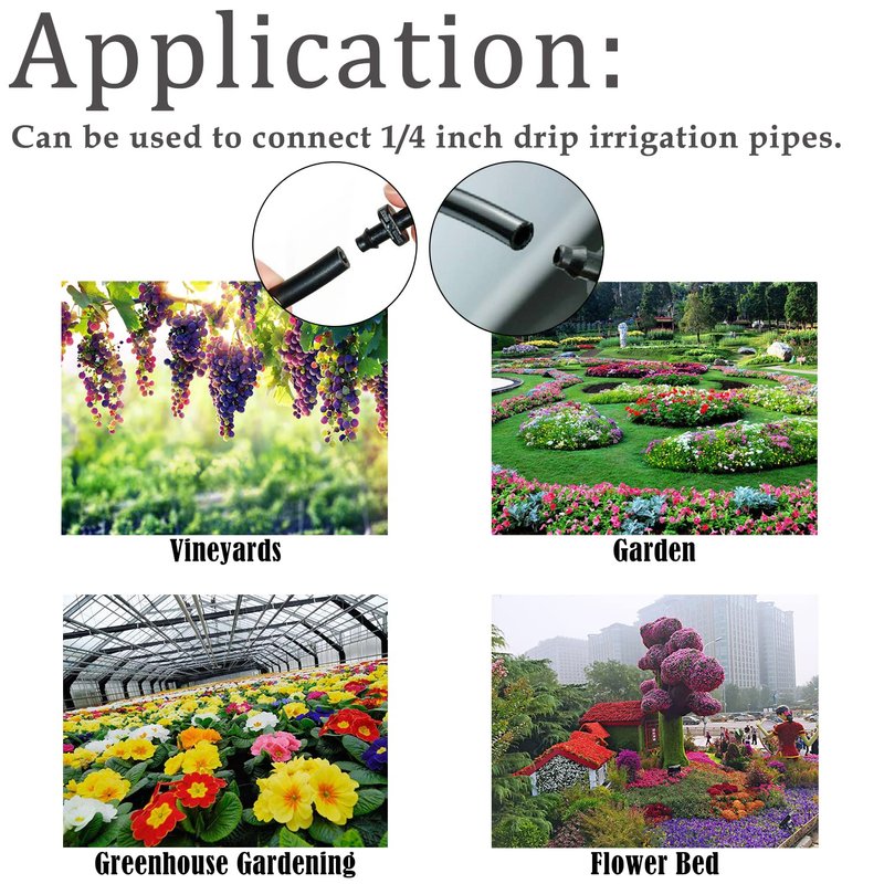 - Wide Application: These drip irrigation connectors are ideal for vegetable gardens, elevated garden beds, flower beds, lawns, gardens, vineyards, farm, residential, forest gardens, greenhouse gardening, and agricultural irrigation applications, with strong practicability.