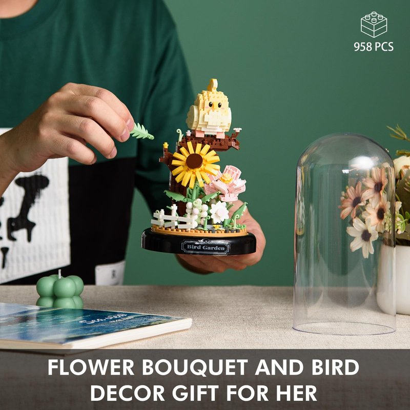Aigidusansu Flower Bouquet and Bird Building Kit, Cute Sunflower Botanical Tree Mini Building Blocks Set Toy for Adults, Christmas Birthday Gift for Her Mom Wife Girlfriend (Bird)