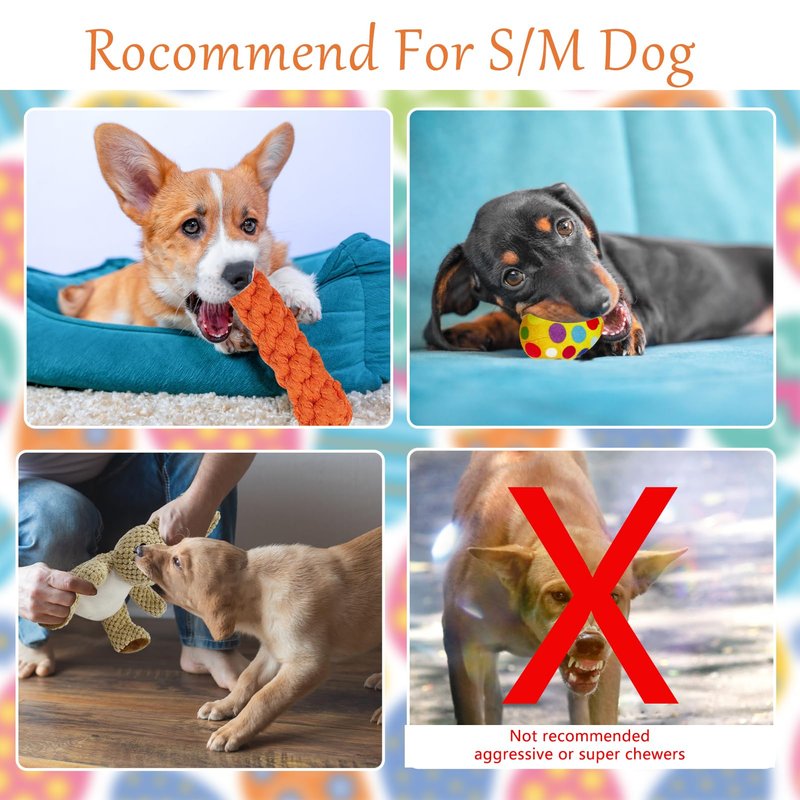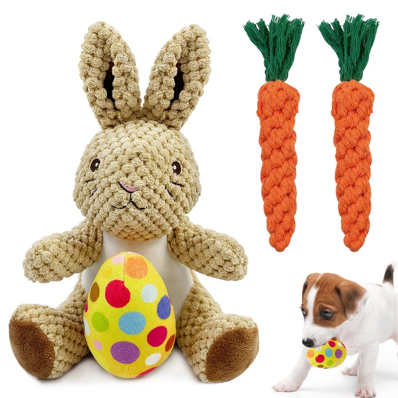 - ⭐Fun Friends For Puppies: Stuffed bunnies, Easter eggs and handmade carrots are packed with sound-making devices that make a squeaking sound when your dog chews them, which can attract and excite your pup. Of course, you can also play with your dog by squeezing them with your hands to make sounds.