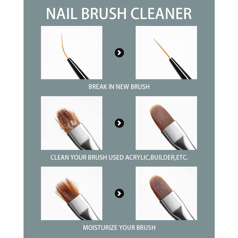 ALL IN ONE SET: The Nail Brush Cleaner set has it all. Nail Brush Cleaner is designed to clean and repair a wide range of nail art brushes. Use the Nail Brush Cleaner to nourish and moisturize your brushes, plus other nail tools to keep your brushes ready for every set of manicures.<br>