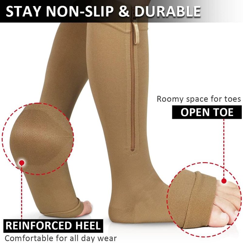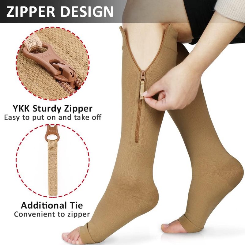 Ailaka Zipper 20-30 mmHg Compression Socks for Women & Men, Knee High Open Toe