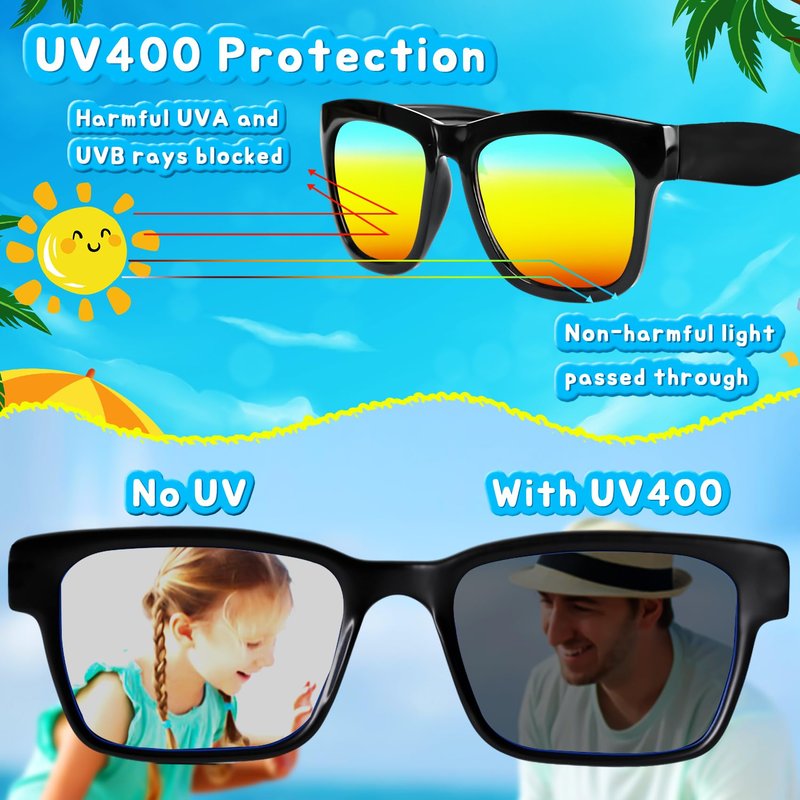 - Toddler Party Favors Sunglasses - with UV 400 Eye Protection, which can effectively reduce the sunlight brightness & high-energy visible light, prevent kid's eye from harmful radiation to alleviate eye fatigue. Bulk kids sunglasses are one of the first choices for summer beach party favors and end of school year gift for students.