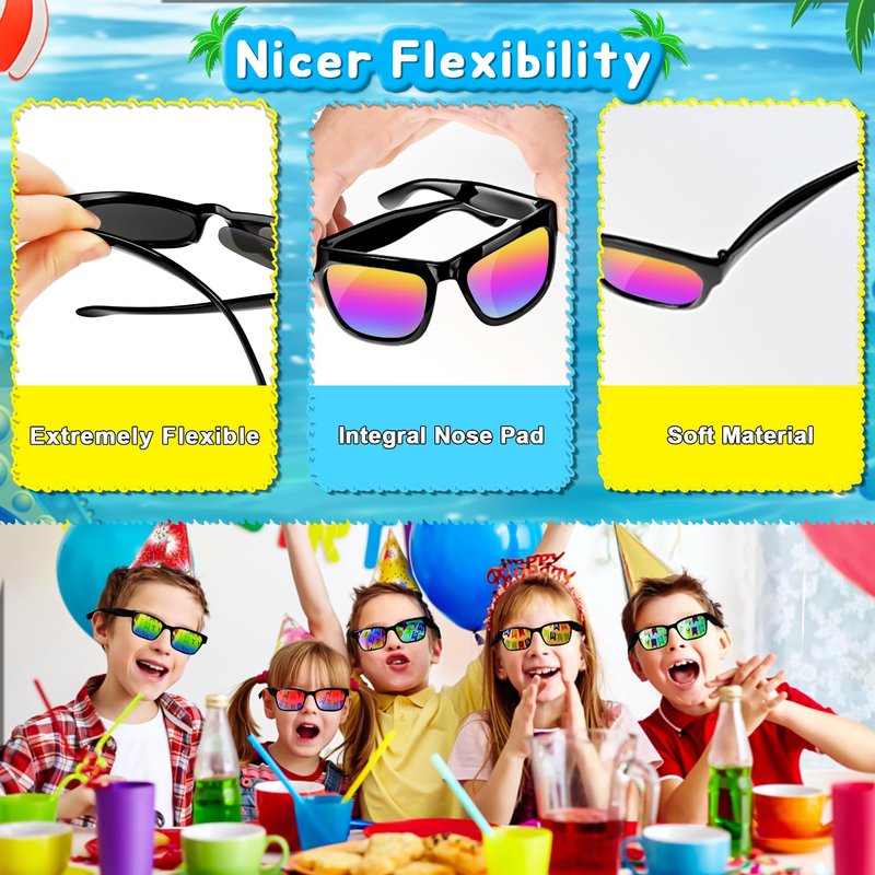 - Sunglass for Kids - This is an ideal and cool party favors for kids. Let's imagine the joy when children get this bulk party favors, the stunning beauty of wearing glasses, more cheerful scene. Suitable for various occasions, let's prepare bulk party favors for your family/class gatherings, pool/beach/birthday party favors!