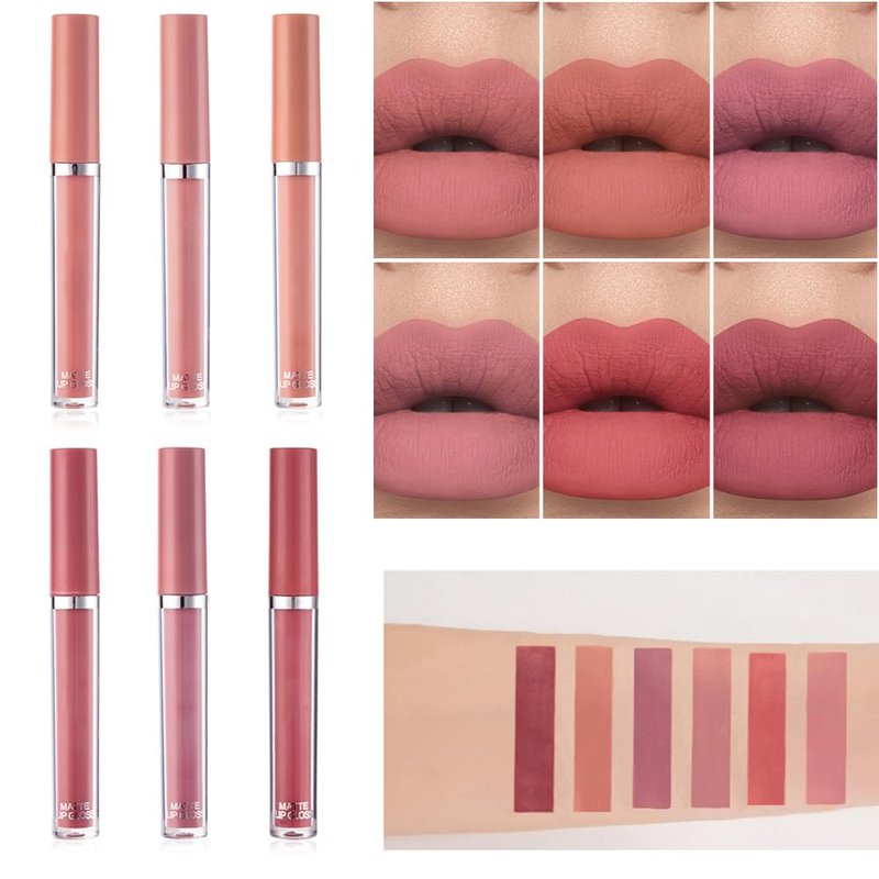 Ailigeus 6Pcs Matte Lipstick Set, Matte liquid Long Lasting Wear Non-Stick Cup, Nude Waterproof Lip Gloss Makeup Kit for Girls Women, Make Up Gift Set. (Set B, 6PCS)