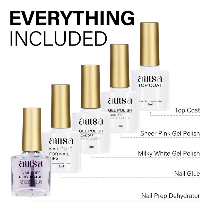 - ALL-MATCH COLORS: The gel nail tips kit includes two colors jelly gel polish: milky white and light pink, matching any outfit or occasion. Two colors can also be paired with each other to create your own nail style. The color depth depends on your nail base color and the number of layers you apply, the fewer layers the more sheer and the more layers the more vibrant. Adding the top coat will give your nails a shiny protective finish and prevent scratches from damaging your beautiful nails
