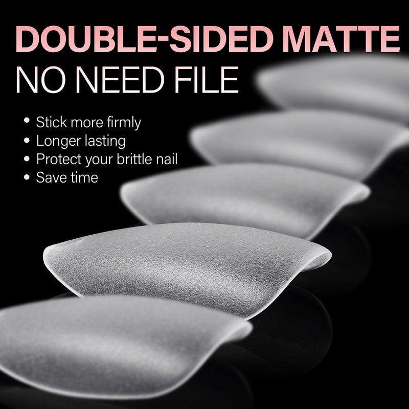 - FULL MATTE TEXTURE - Why choose AILLSA nail tips? Choosing upgraded double sides full frosted texture, the gel nail tips feature stronger adhesion, better fitting your natural nails. Using this acrylic nail tips, you can enjoy the privilege of “ NO NEED FILE, NO NEED BASE COAT ”. No worry that your nails will become thinner and uglier due to polishing, providing better care for your nails. Without base coat, you also can get the manicure effect you want, saving time and money.