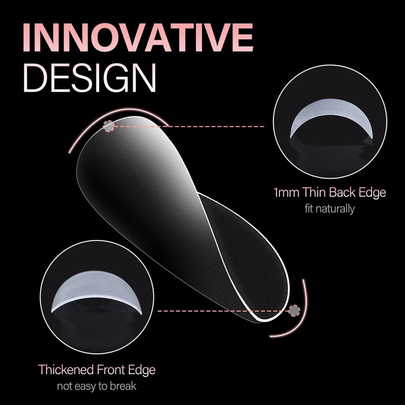 - NATURAL FIT EFFECT - Our soft gel tips feature “ Thin back edge, thick front edge”. The thinner back edge can make the full nail tips fit your nails better, which will not make you feel uncomfortable. Also, the clear nail tips are more breathable, which will not cause burden and pressure on your fingers; The thickened front edge makes it not easy to break or bend, having longer lifespan. Just like your natural nails, do whatever you want!