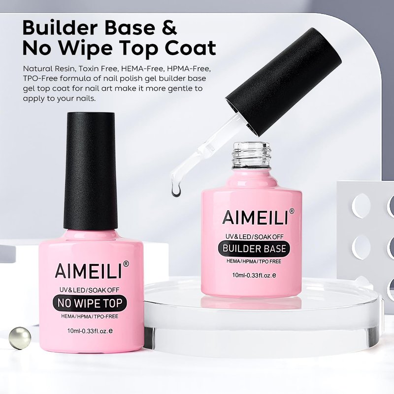 - Builder base can be used as Builder Nail Gel & Base Coat & Nail Reinforce Lacquer. AIMEILI No Wipe Top Coat is used to seal all the color gel, and will dry with high-gloss finish result.