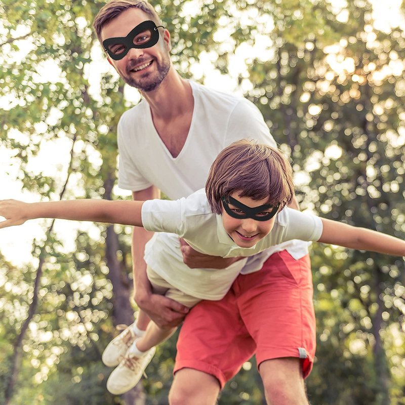 - Quantity: Pack of 2 black superhero masks, comes in a ziplock pouch for storage for the next time you need them.