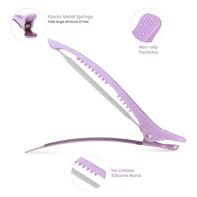 - NO-CREASE: Colorful hair clips are designed with a silicone band that won't leave creases in your hair, even after long hours of wear. With no teeth, hair sectioning clips are easy to put on and remove without pulling. Great for anyone who likes to curl or style their hair or securing hair rollers, as your roller clips etc