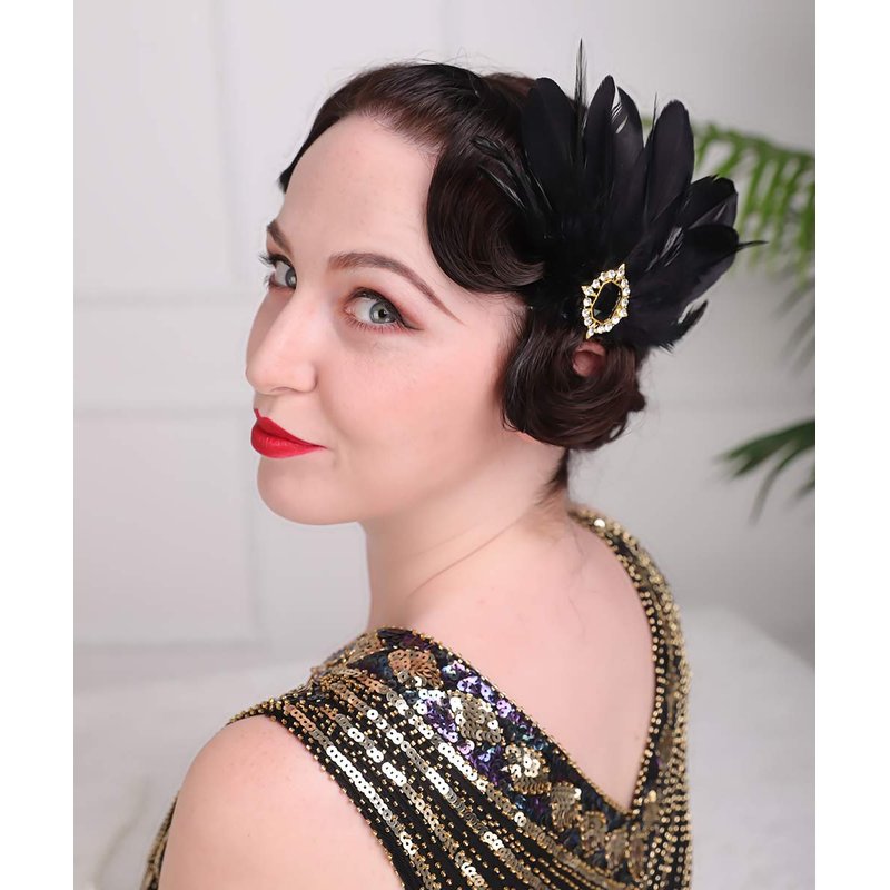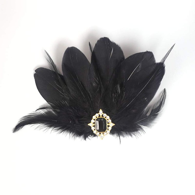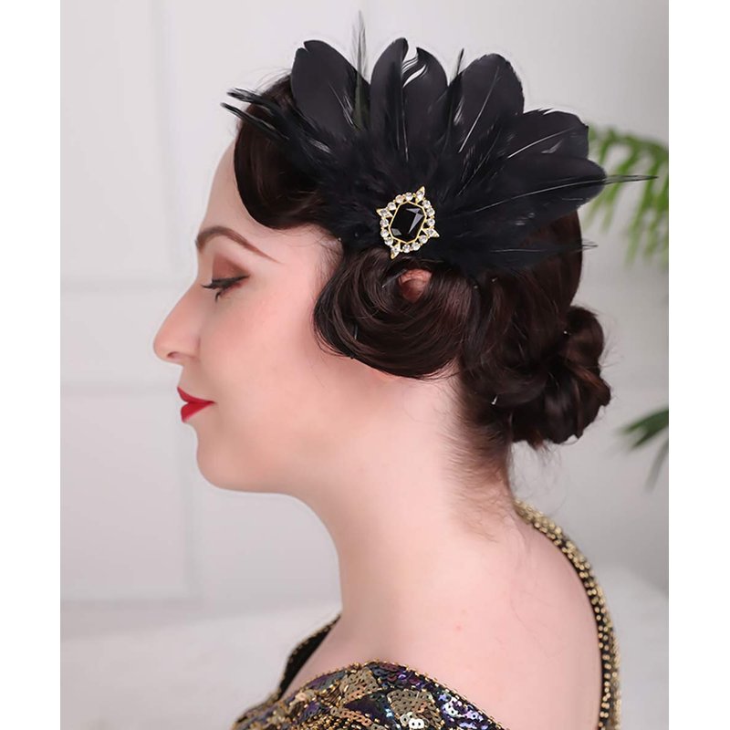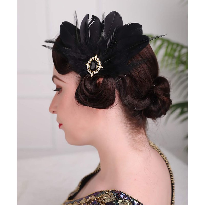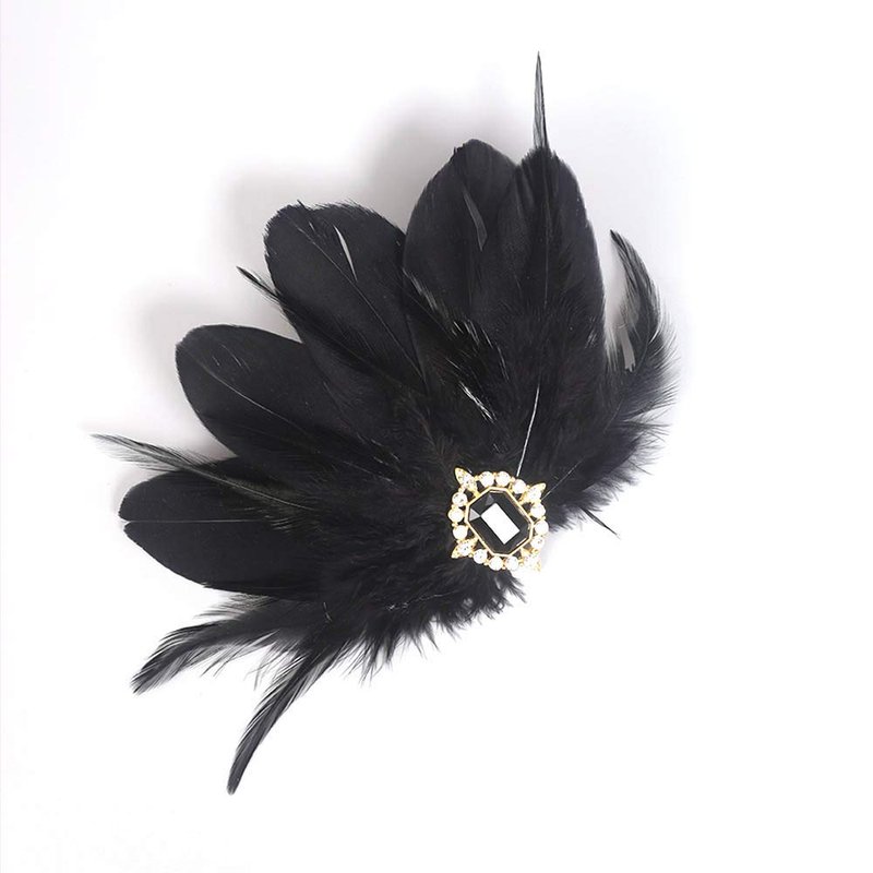 Aimimier 1920s Flapper Black Feather Headpiece Crystal Roaring 20s Feather Hair Clip Masquerade Hair Jewelry for Women