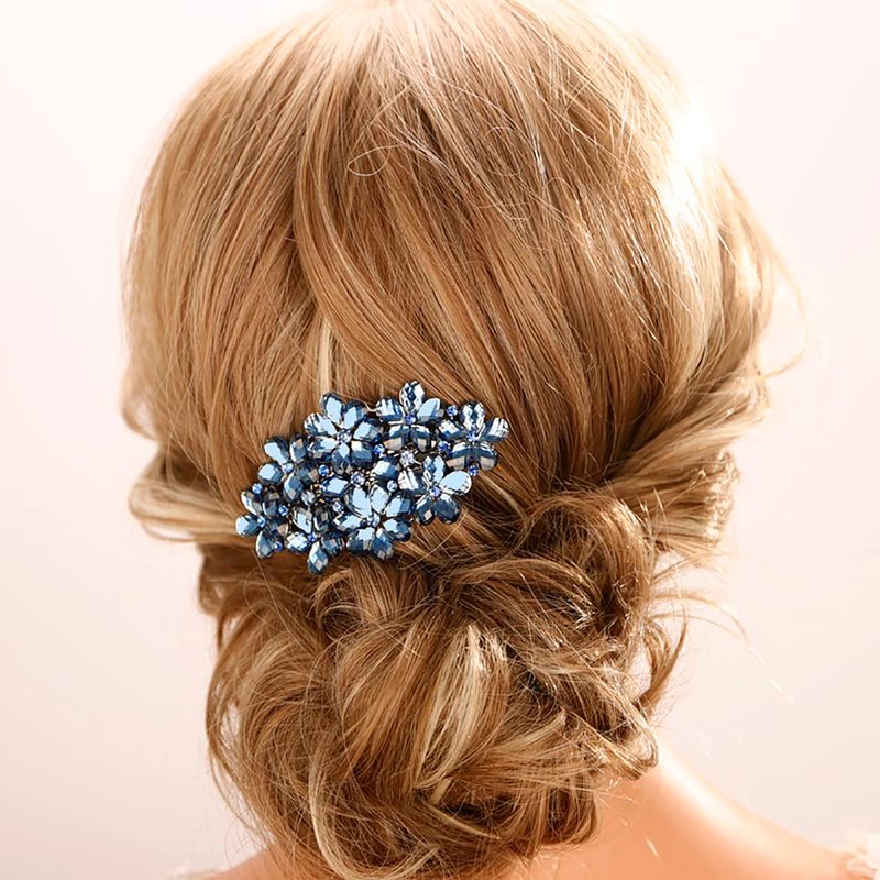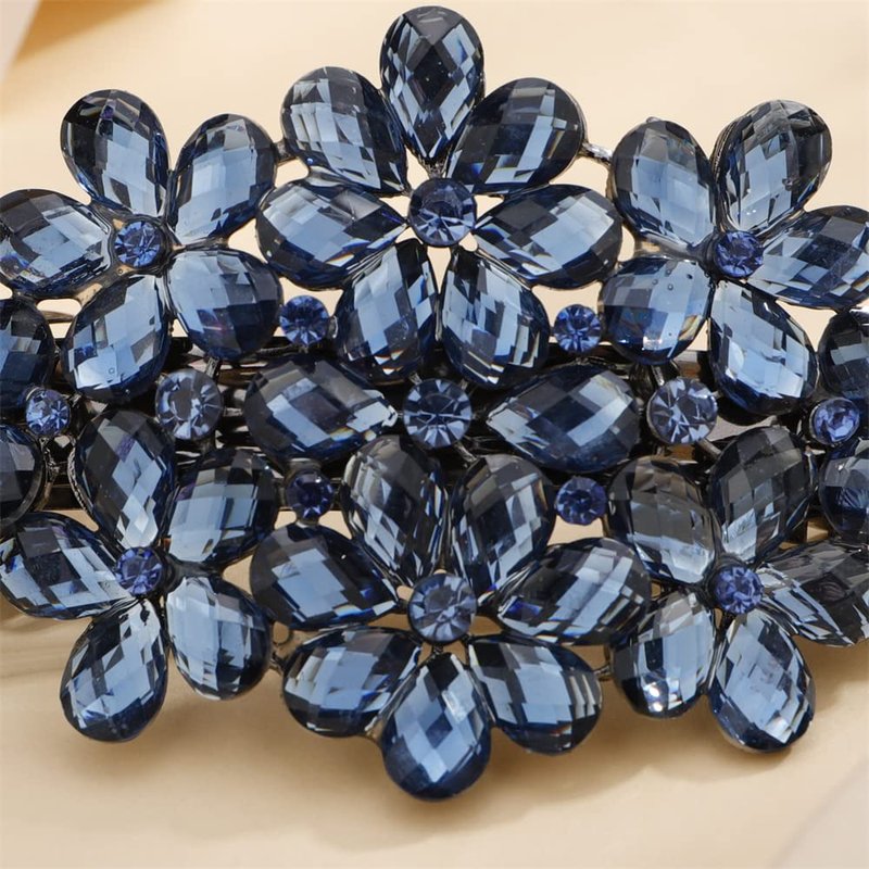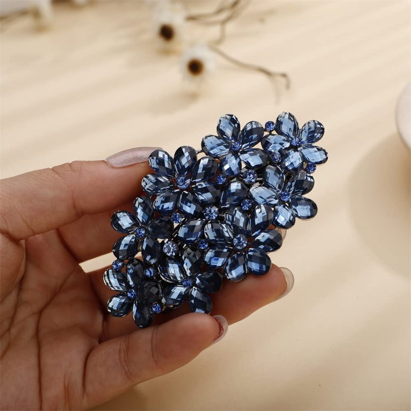 Aimimier Flower Crystal Hair Barrettes Shiny Rhinestone Hair Spring Clips Gem Hair Pins Bridal Hairpiece Wedding Hair Accessories for Women (Blue)