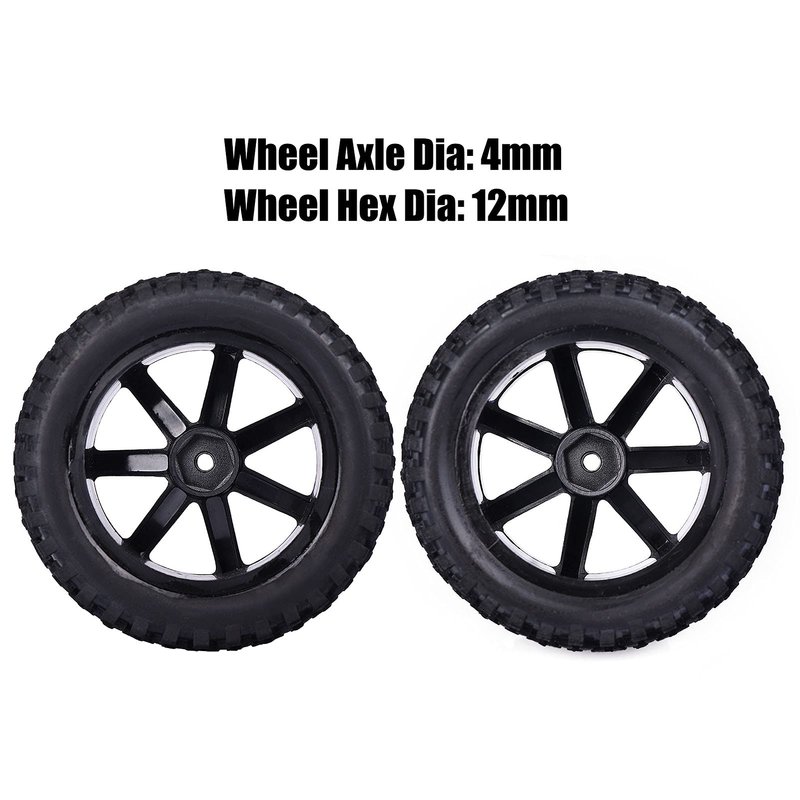 - Tire Dia. 3.46" (88mm); Wheel Dia. 2.17” (55mm); Front Width 1.3" (32mm);Rear Width 1.54" (39mm) Hex 12mm; Axle Diameter: 0.16”(4mm)