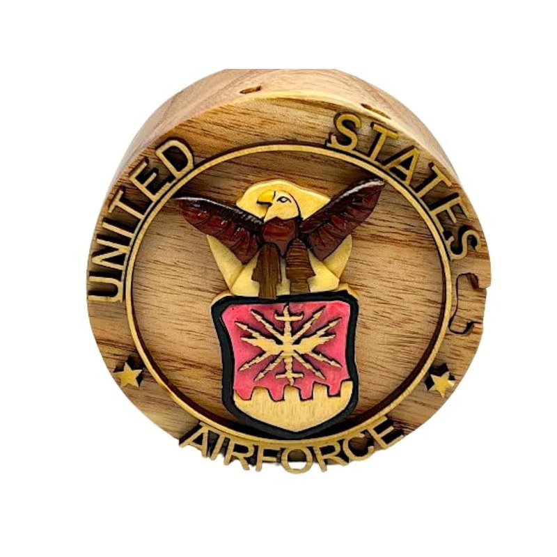 Air Force Wooden Puzzle Box - Hand Carved with Secret Compartment - All Natural Intarsia Wood Art