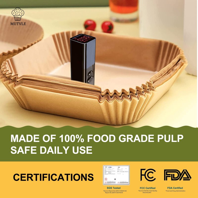 - 【Easy to Use】These non-stick air fryer disposable paper liner are designed with a square bowl shape, which do not need to tear, fold, cut, nor bend, and you can directly put it in when you are ready to cook. Its heightened edge 4.5cm can protect the side of fryers and prevent food from sticking to them.