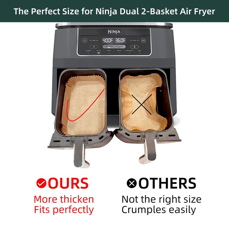 - Air Fryer Disposable Paper Liners for Ninja Airfryer: The air fryer disposable paper liner is 8.6 x .5 inches, the perfect size for Ninjia 2-Basket DZ201 DZ401 Foodi. Also, fits all Brands Of 2-Basket Air Fryer.