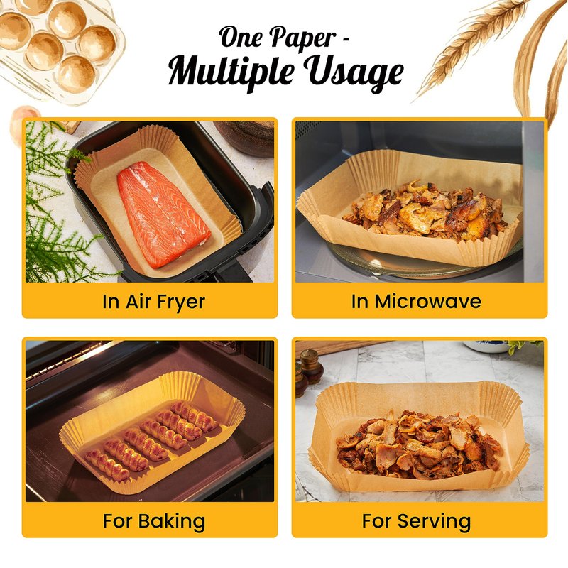 - EASIER CLEANUP & TIME SAVINGS - Simplify your cooking routine with our rectangular disposable air fryer paper liners. Effortless clean-up means more time enjoying your meals!