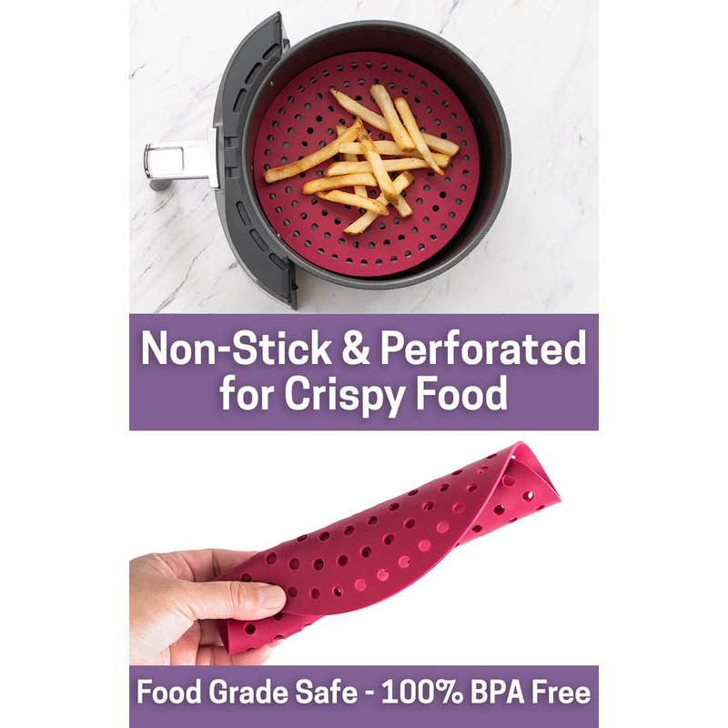 Air Fryer Silicone Liners, Non-Stick, Easy Clean, Reusable Air Fryer Liner Mats Accessories 8” ROUND (2-Pack) “CABERNET” Fits most air fryer models