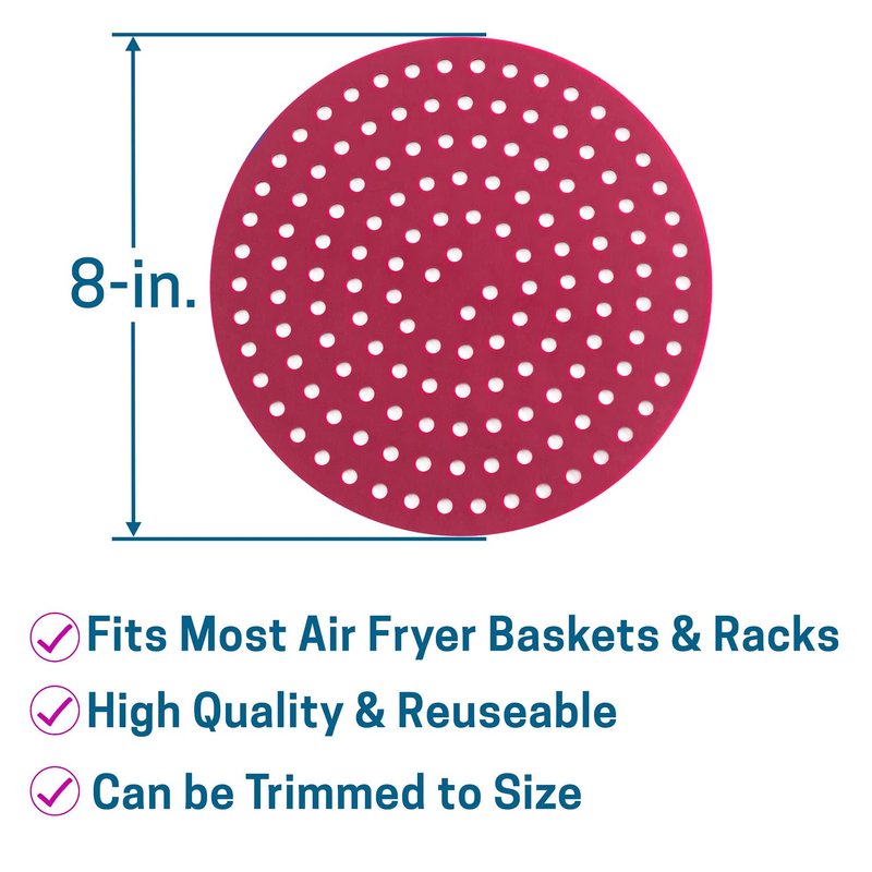 - * FITS MOST AIR FRYER MODELS. These can also be easily trimmed to size. You can use these in baskets, racks or trays. PERFORATED DESIGN: Maximum perforated hole design for optimal air flow for crispy food. Even heat distribution for cooking food evenly.