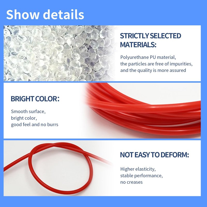 Scope of Use: pneumatic pneumatic tools; instrumentation, mechanical natural gas pipelines; mechanics; laboratory automation equipment; general industrial water use and gardening. The surface of the trachea is smooth, the pipe wall is thickened, the explosion-proof performance is higher than that of ordinary pipes, it is hard and stable, easy to install and easy to process.