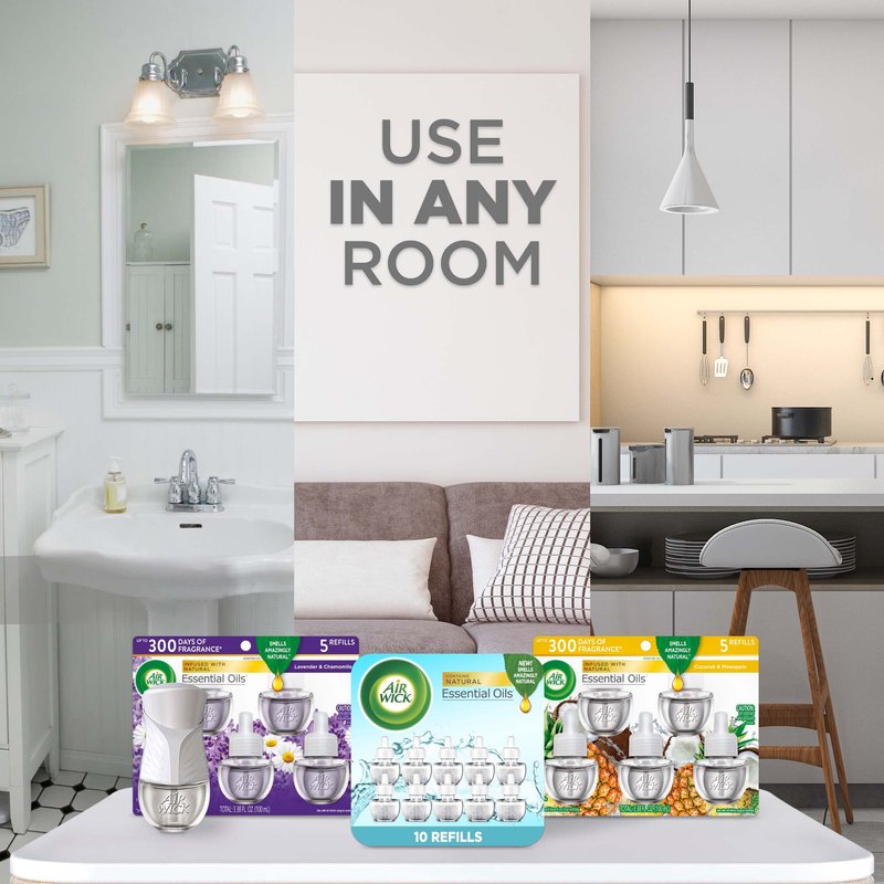 - WARMER: Easy adjust warmer with 5X fragrance settings. Refills are compatible with all versions of Air Wick plug in warmers