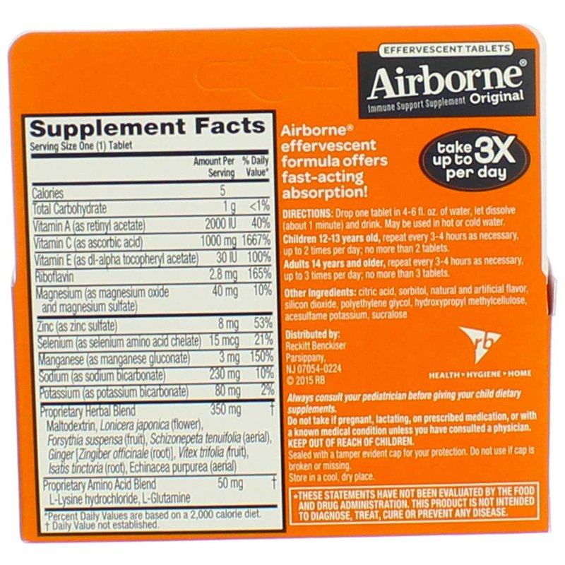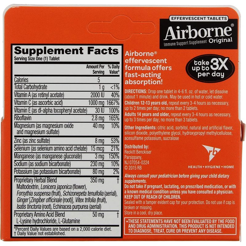 Airborne Effervescent Tablets, 10 Count - 1000mg of Vitamin C - Immune Support Supplement (Zesty Orange (Pack of 2))