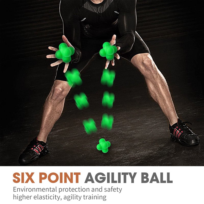 The reaction ball is consist of a Six-hemisphere design can create totally unpredictable, random bounces and leaps.