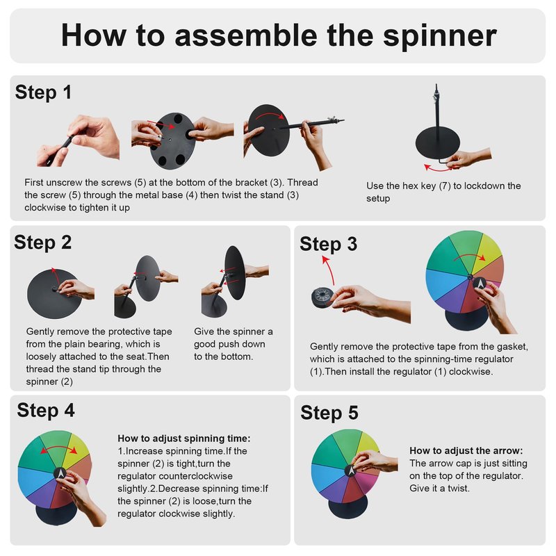 - Smooth Rotation: The sturdy, all-metal construction ensures a balanced, evenly distributed load, reducing wobble during rotation and enhancing stability, durability, and longevity. The color wheel also minimizes friction and resistance during rotation, allowing the prize wheel to spin smoothly and quietly, improving the overall user experience