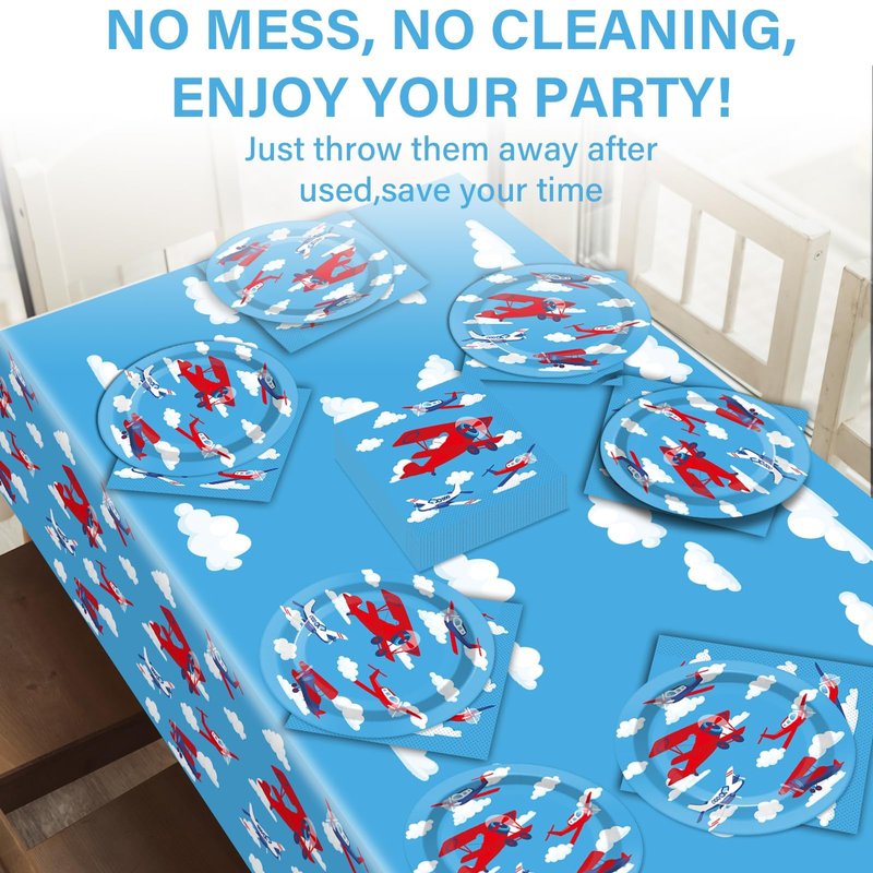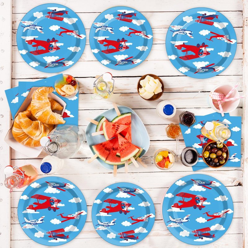 - 【Set the Stage for Airplane Birthday Bash】Planning an airplane birthday party? Let our airplane birthday party set take care of the tableware, so you can focus on the fun. This airplane tableware set features cool airplane designs on 7-inch plates, napkins, and a tablecloth, perfect for accommodating up to 24 guests. It's a great option for anyone who wants to throw an awesome airplane bash.