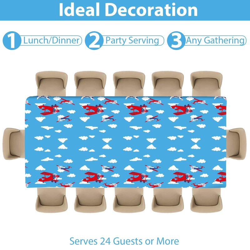 - 【Everything You Need in One Convenient Package】Our set includes 49 pieces of high-quality plane birthday party tableware, so you can stock up on all the essentials for your airplane -themed party. You'll get 24 plates, 24 napkins, and a tablecloth - everything you need to keep your guests satisfied and your party space looking great.