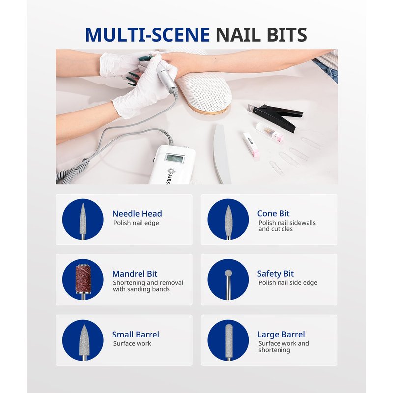 - Expert Versatile: Equipped with 6 metal bits and adjustable 3000-30000 RPM. Low heat, noise, and vibration. Powerful for natural acrylic nails, gel polish, dip powder, cuticle removal, and calluses. Suitable for both home and salon use