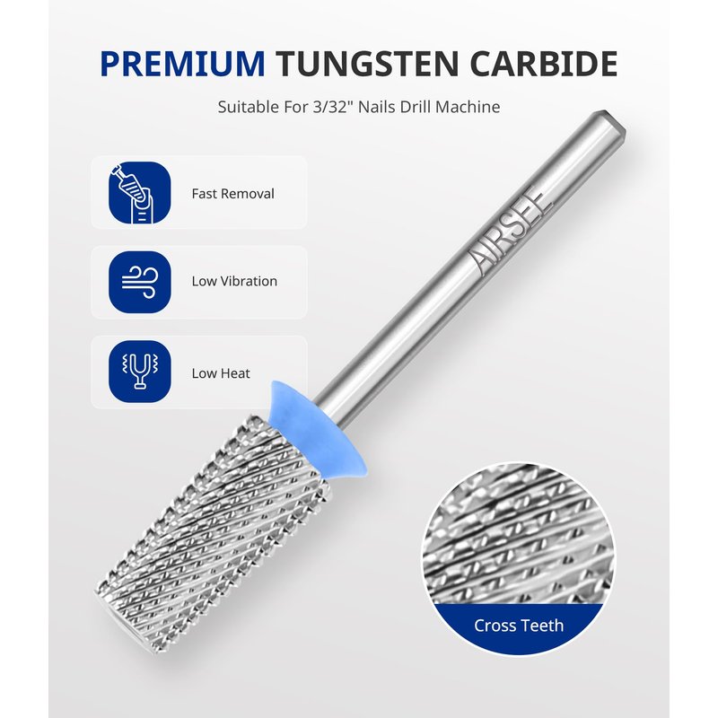 AIRSEE - Join our salon-quality nail club! AIRSEE specializes in the field of health and beauty care, especially nail art. AIRSEE nail products have been always highly recommended by customers for excellent quality, easy operation and great value for money. No matter you are nail technicians or beginners, no matter for home or salon use, you can find the most suitable nail products from us and enjoy the best service. Tungsten Carbide Nail Drill Bits Tungsten carbide is very hard, similar to diamond, about twice as hard as steel and 10 times as hard as 18k gold. Tungsten carbide nail drill bits can maintain sharper cutting edges for longtimes because of their wear, corrosion, and temperature resistance, allowing to speed up manicuring and reduce dust. Tungsten carbide nail drill bits have an extra-long service life. AIRSEE High-grade Series Nail Drill Bits AIRSEE High-grade Series Nail Drill Bits are brand new high-end nail accessories of AIRSEE brand, which focus on high quality and high professionalism. The series of nail drill bits are rich in models and coarseness, which can meet the needs of various nail art scenes of all levels of users such as nail beginners, nail experienced people, nail salon techs, etc. It is recommended to use AIRSEE Nail Drill Bits with AIRSEE Electric Nail Drill to achieve perfect manicure effect.