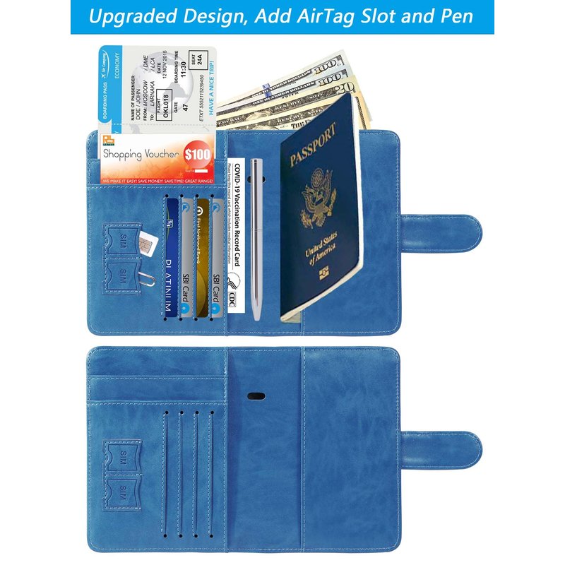 Airtag Passport Holder Cover Wallet RFID Blocking Leather Case Travel Essentials Luggage Accessories Travel Must Have(118#Blue)