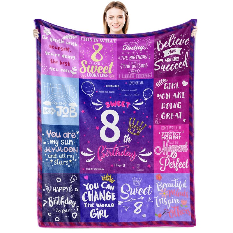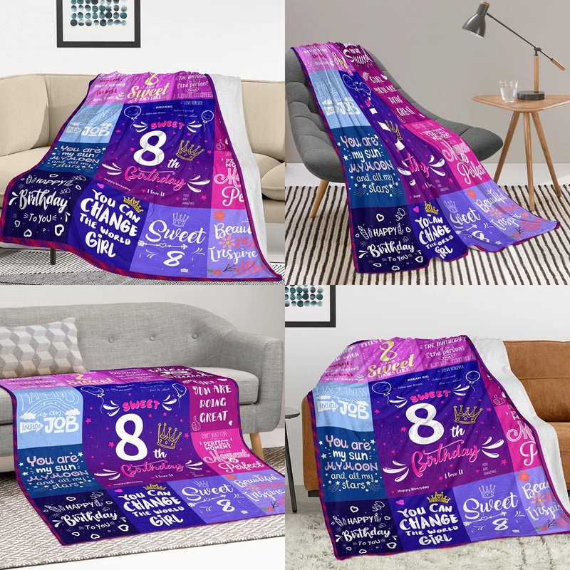 - 【Great for Gifts】The special design will make you feel warm. This super soft 8 years old birthday blanket is specially designed for your daughter, granddaughter, niece, sister, friend and so on. The purpose of this throw blanket is not only to bring warmth but also to bring love. Giver to express love, make her feel warm and loving. Imagine the moment your family/friend opens the pack and realizes it's a meaningful blanket for her!