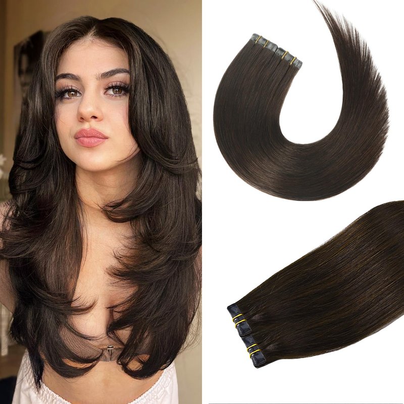 Aison Dark Brown Tape in Hair Extensions Human Hair 100% Remy Human Hair Extensions Silky Straight for Fashion Women 20 Pcs/Package(22Inch #2 60g)
