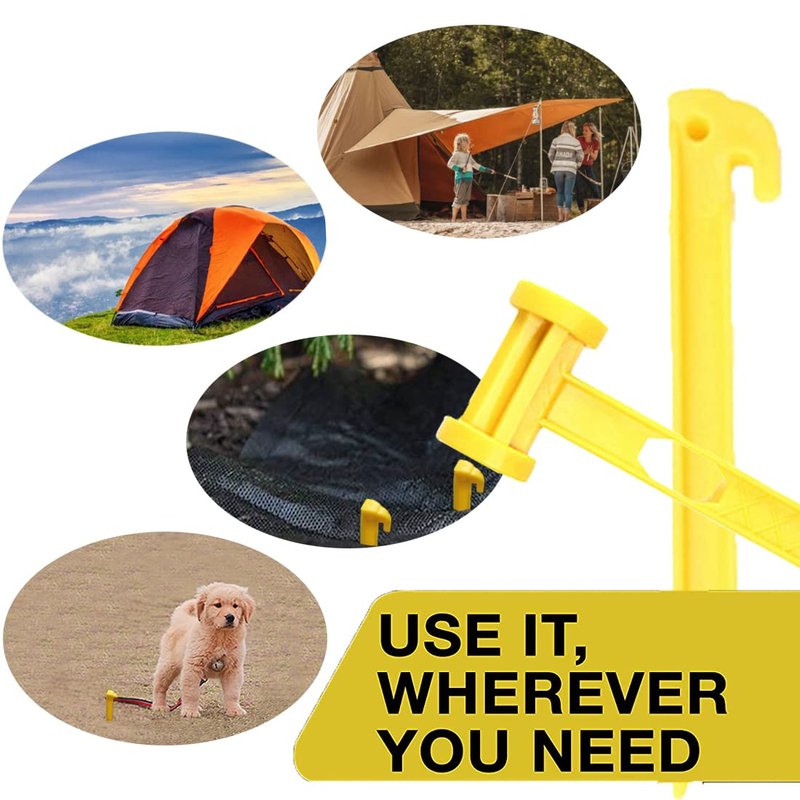2. Both tent stakes and mallet are made of strong and durable ABS material, portable and convenient.