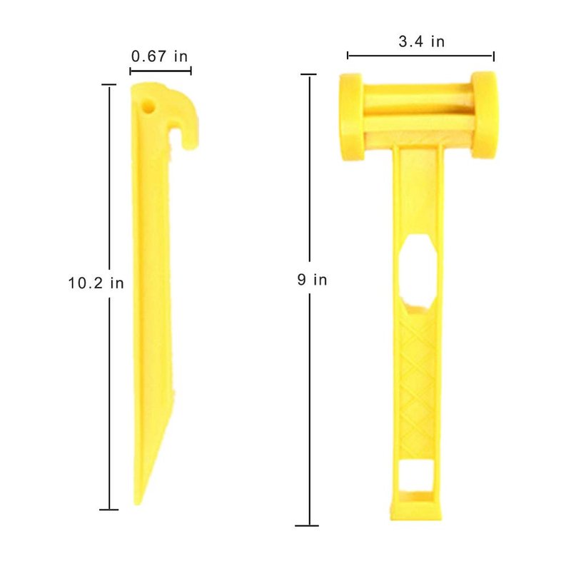 - The size for the tent stakes are 225 mm/9 inch.And the size for the tent hammer is 26cm/10.3inch.it is convenient for you to carry on trips or hikes.