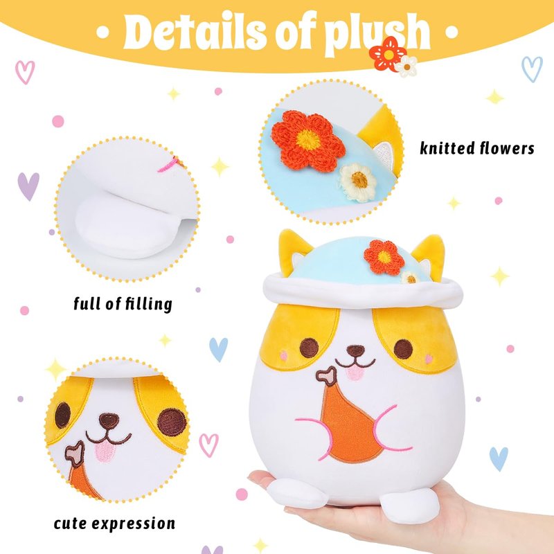 - 【Size】Kawaii cuddly corgi plushie is 8" height. Palm size, soft squishy plush travelabe toy!