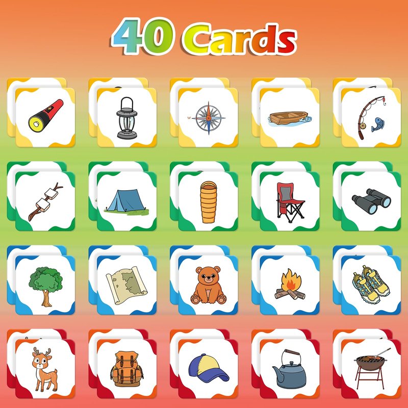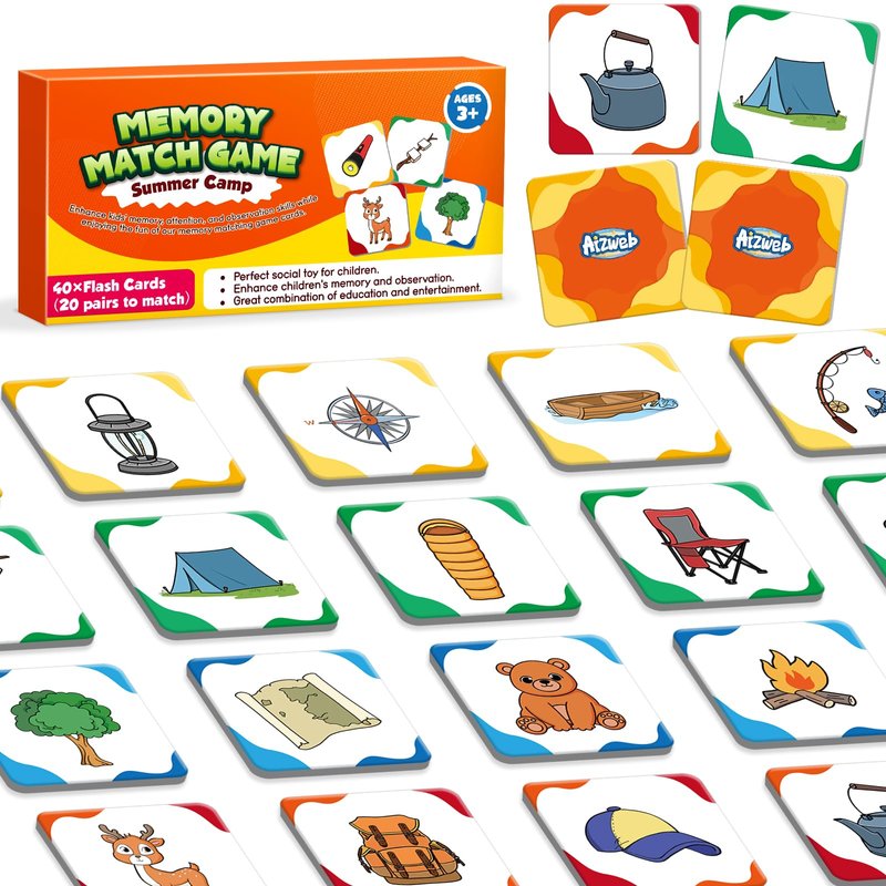 - 【Summer Camp Match Game】Practice memory skills by flipping and matching cards. Each player flips 2 cards at a time, If the cards don't match, flip them back over and it's the next player's turn. When all cards have matched, the player with the most cards wins!