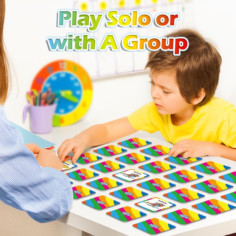 - 【Play Solo or with A Group】Includes 48 sturdy card tiles (24 pairs), each card measures 2.36” X 2.36”. Ready for all kinds of preschool learning activities, this set makes a natural addition to toddlers in the classroom, homeschooling aids, and daycare tools. Notice: If you’re playing with younger players try having them flip four tiles at a time instead of the two!