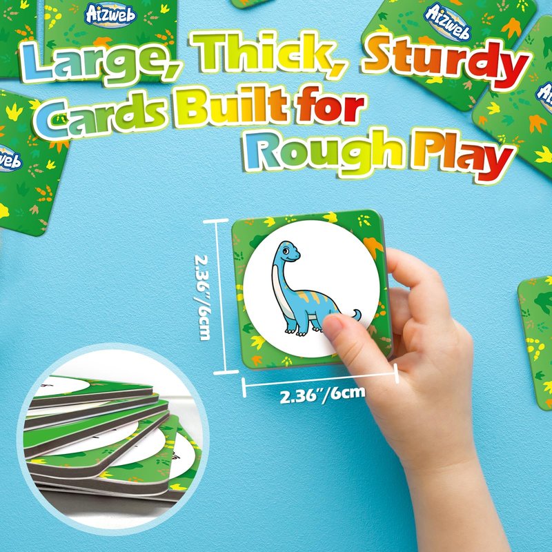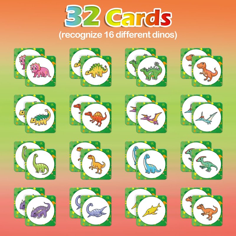 - 【Dinosaur Match Game】Practice memory skills by flipping and matching cards. Each player flips 2 cards at a time, If the cards don't match, flip them back over and it's the next player's turn. When all cards have matched, the player with the most cards wins!