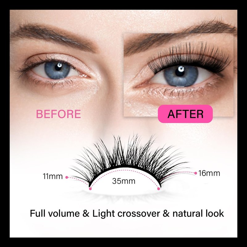 - Easy to Apply & Flexible Band: 34-35mm lash band length can be easily trimmed to fit your eye shape, ensuring a comfortable and secure fit, and making it easy to apply.
